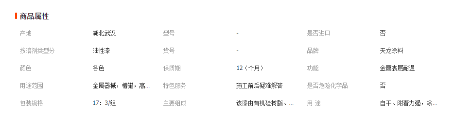 主要組成:該漆由有機(jī)硅樹(shù)脂、合成樹(shù)脂、耐高溫顏料、有機(jī)溶劑等組成的雙組份或單組份涂料。