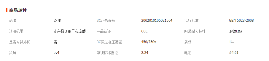 眾邦電纜BV4平方電線
